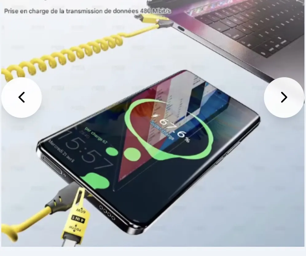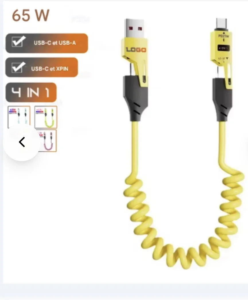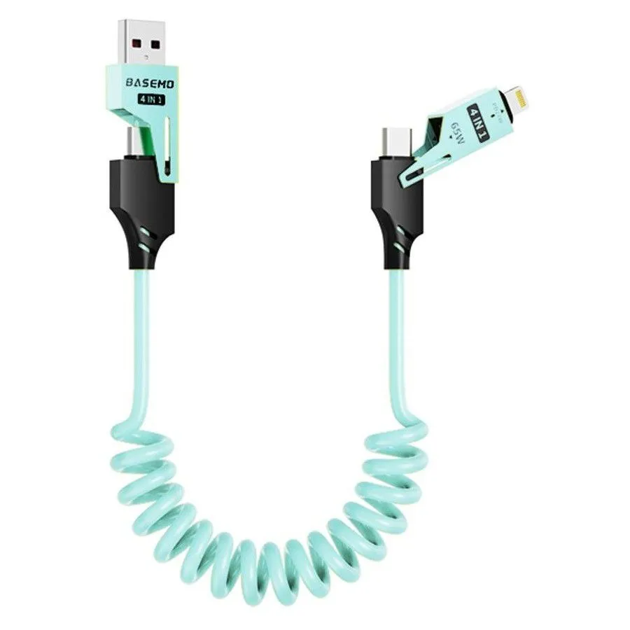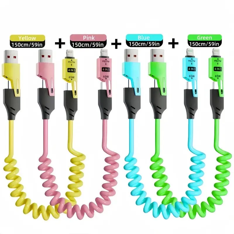 Câble 65W 4 en 1 type-c/USB C à type-c câble de données de charge rapide PD 27W pour iPhone16 Huawei Samsung cordon de chargeur USB rétractable Trois couleur Bleu Vert Rose