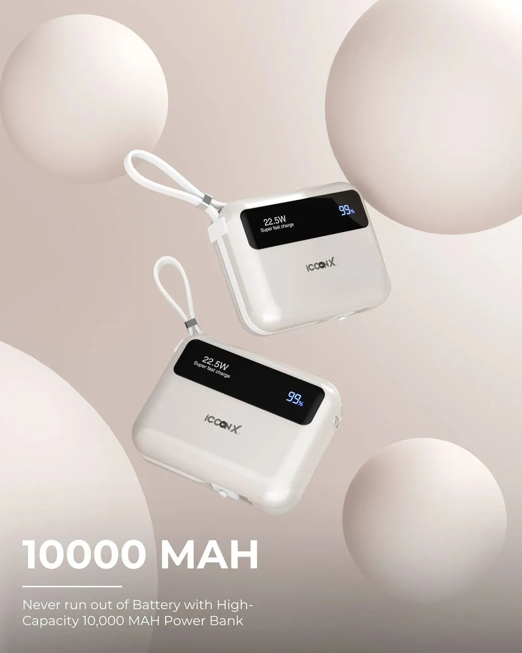 Power Bank 10000mAh PD22.5W banque de puissance de charge super rapide, Batterie externe avec affichage LED pour les voyages en plein air